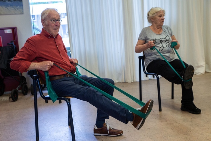 Jaap loopt met een rollator. Toch lukt het bewegen hem nog goed. De lessen zijn best pittig. Maar iedereen komt met een glimlach naar buiten. Ze nemen een kopje koffie of thee en buurten gezellig na. Want het sociale contact is zeker zo belangrijk als de gymles.